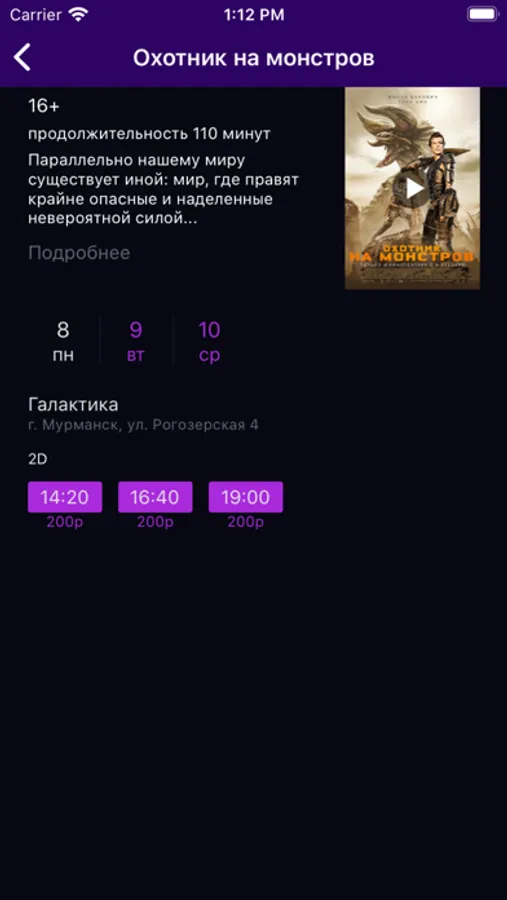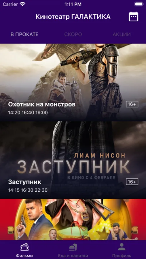 В приложении «Галактика» вы можете приобретать билеты на любой киносеанс в кинотеатре Галактика г. Мурманск. Вы так же можете приобрести продукцию кинобара. При покупке билетов или продукции кинобара через приложение вам будут начисляться бонусы, которые можно будет использовать при следующей покупке билетов или продукции кинобара.