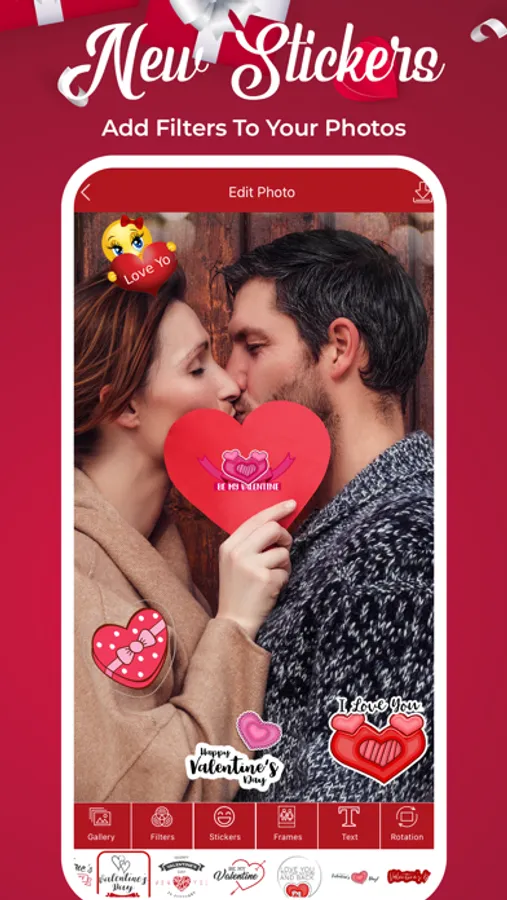 Valentines Day Card & Frames, you can easy to add beautiful Valentine frames to your favourite photos and share with friends via Facebook, Email, what