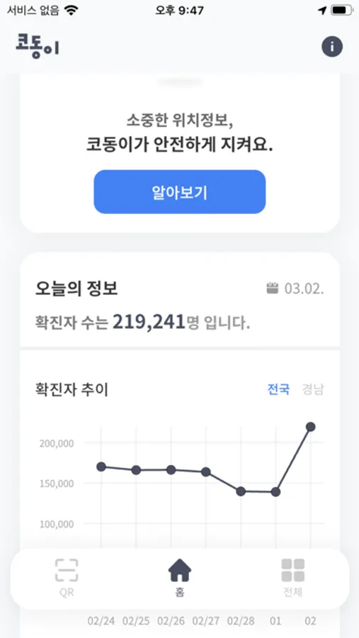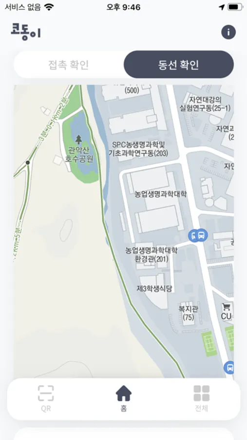 '코로나 동선 안심이'를 통해 사용자는 코로나19 확진자와 접촉 위험이 발생했는지 확인할 수 있습니다.