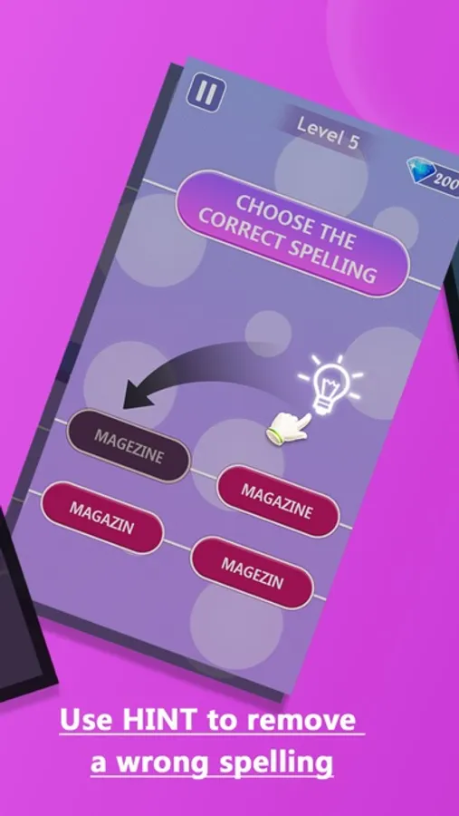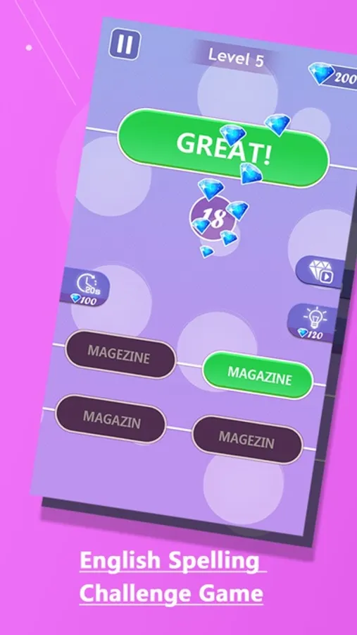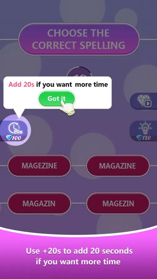 The great challenge for you in Word Spelling is to find the correct word from 4 similar spelling options. Countdown will increase your challenge difficulty.