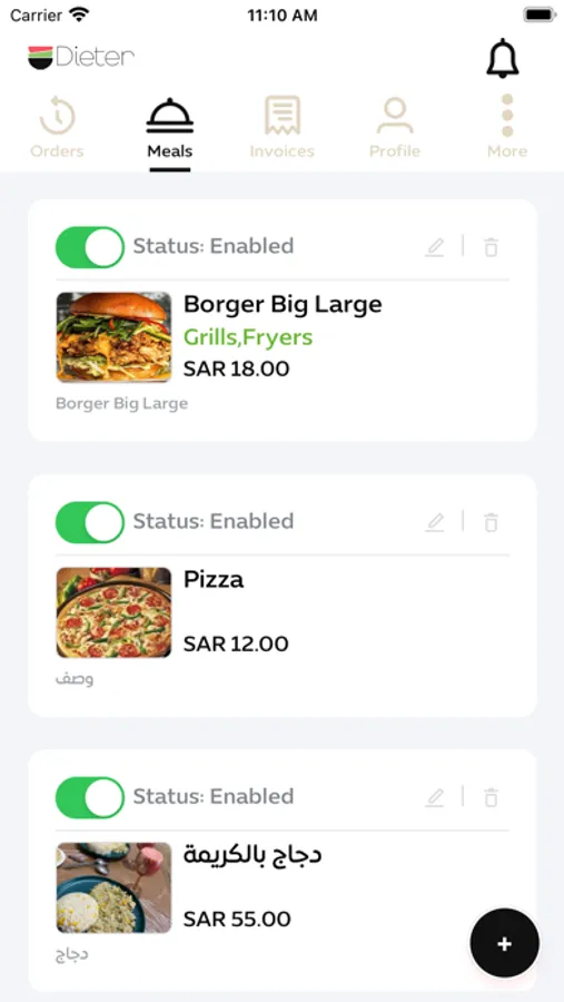 تطبيق دايتر هو تطبيق متخصص بالمطاعم والمتاجر التي تقدم المأكولات الصحية والعضوية ووجبات الحمية والرشاقة .. يقدم التطبيق الوجبات او المنتجات بناء على نوع الحمية التي يتبعها المستخدم ويقوم باقتراح الوجبات المناسبة له حسب معلوماته الصحية التي قام باضافتها عند التسجيل ..ويوفر التطبيق خدمة التوصيل للمستخدم وأيضا استلام الوجبات من المطعم او المتجر كما يتيح التطبيق للمستخدم معرفة معلومات الوجبة الصحية مثل السعرات الحرارية ومكوناتها وما هي انواع الحميات التي تصلح لها كل وجبة.