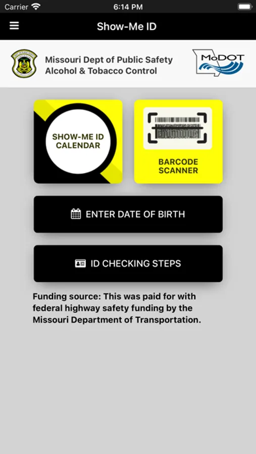 The Missouri Department of Public Safety Division of Alcohol and Tobacco Control provides this supplemental app to help aid with alcohol and tobacco sales compliance. The app includes built-in scanning functionality using the camera feature on the device so that you can quickly determine age and validity of an ID. This app is not a replacement for reasonable and necessary steps that may be needed to determine the age or identity of a person.