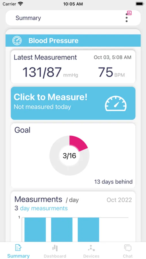 Quick and easy; CardioConnect allows you to connect your Bluetooth-enabled monitors to the mobile app for remote monitoring. View your data through an intuitive and dynamic dashboard, and share such data with your physician or clinician in near real-time. CardioConnect RPM also enables physicians to review your data from any internet-connected device anytime and anywhere. With a click of a button, communicate with your physician using in-app chat messaging or video call and schedule appointments if necessary.