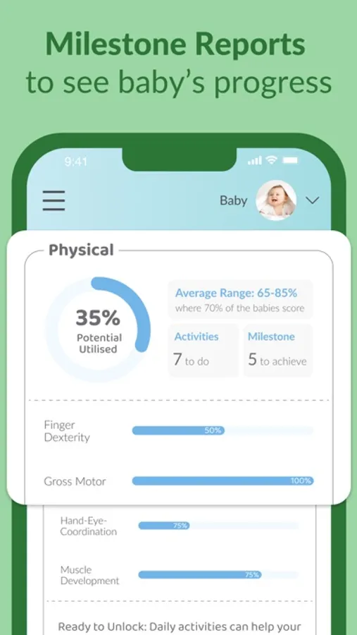 Designed by child experts, BabyG is a smart infant development tracker cum activity app to help you unlock your baby’s development early on!