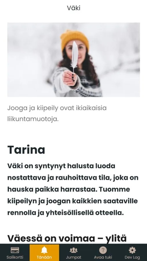 Olit sitten jo Lapin Väen jäsen tai vasta sellaiseksi haluava, mobiilisovelluksemme on käyttöliittymäsi meidän palveluihimme. Voit sen avulla aloittaa kuntoilut meillä, käyttää mobiilisalikorttia, varata ja kirjautua ryhmäliikuntatunneille, viestiä asiakaspalvelumme kanssa ja paljon muuta!