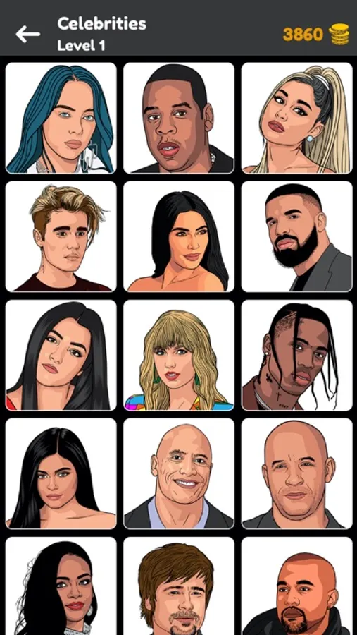 Free fun game with over 2,000 amazing drawings of popular American and international Celebs