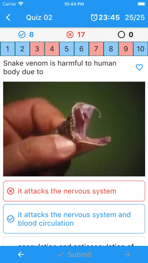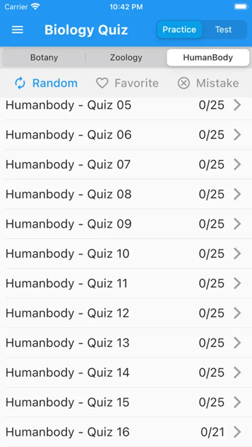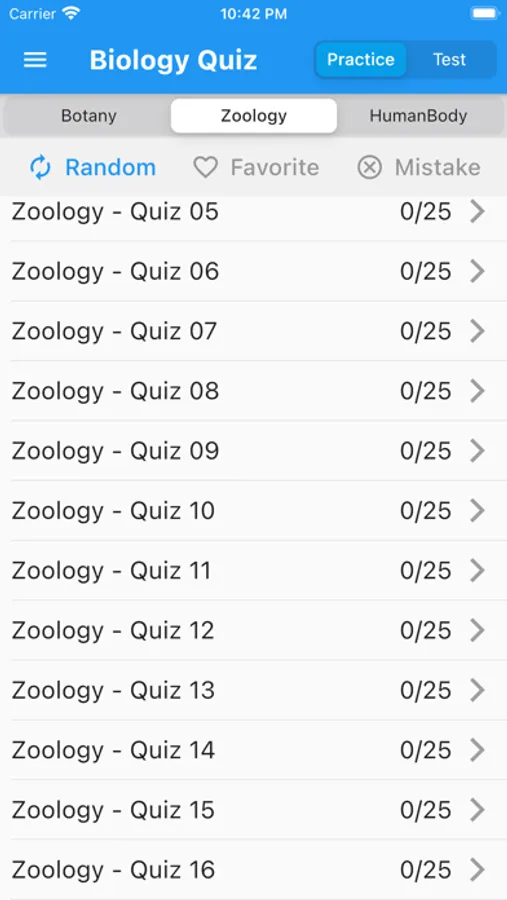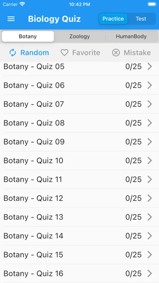 - 65+ sets of Quiz each with 25 questions in botany, zoology and human body