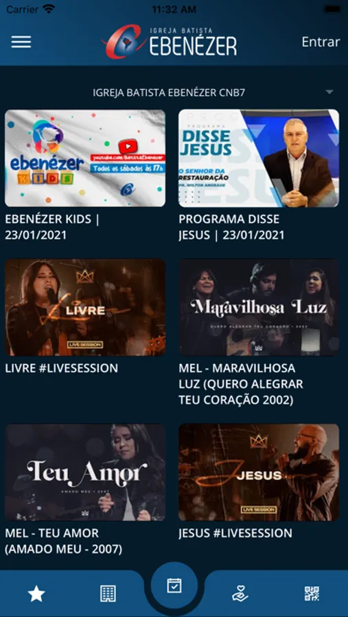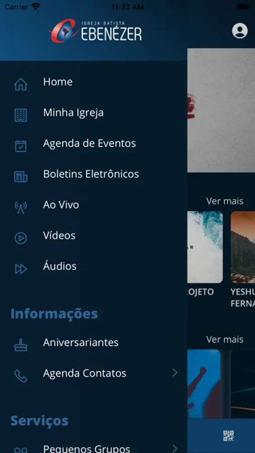 * Conteúdos (Áudio/Vídeo): Permite visualizar e ouvir conteúdos da Igreja disponíveis no App;