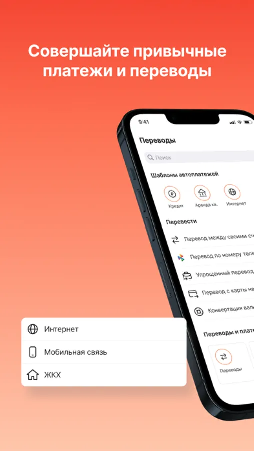 • Быстрая оплата услуг мобильной связи, интернета, ЖКХ, ТВ и других
