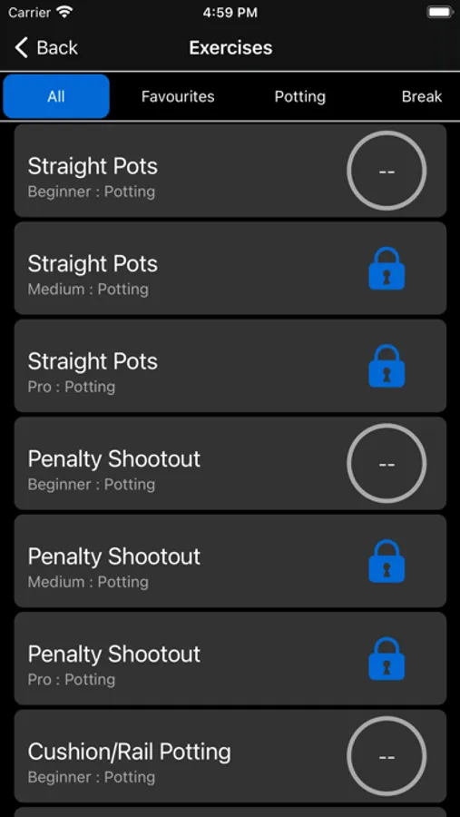 Featuring 35 pro practice exercises the app shows you exactly what you need to do to improve your game. Each exercise includes a detailed explanation with an animated demonstration. You can play through the exercise yourself and record your score in the app. Over time the app will track your progress so you can see how you are improving and where you need to practice more.