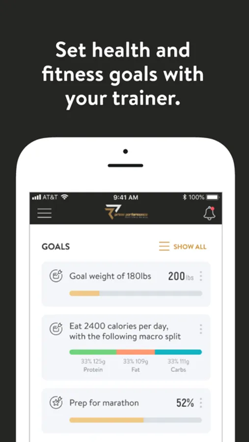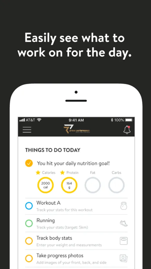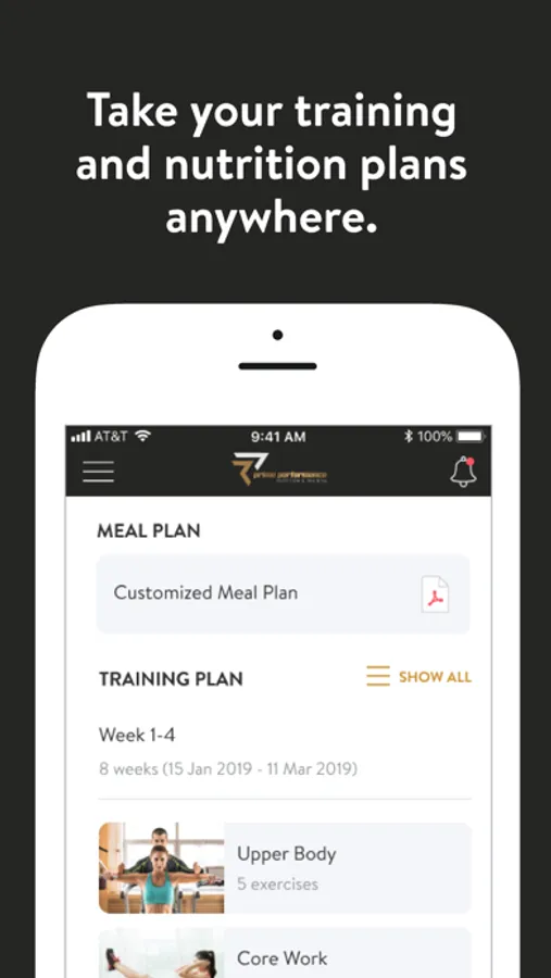 With the Prime Performance App, you can start tracking your workouts and meals, measuring results, and achieving your fitness goals, all with the help of your personal trainer/coach.