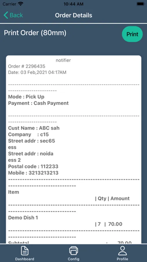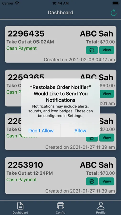 This app can be installed on iOS devices to receive notifications of incoming online orders being placed on your own online ordering system.