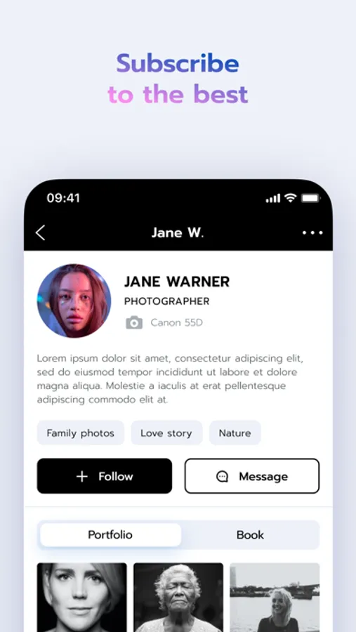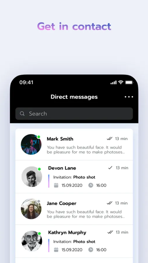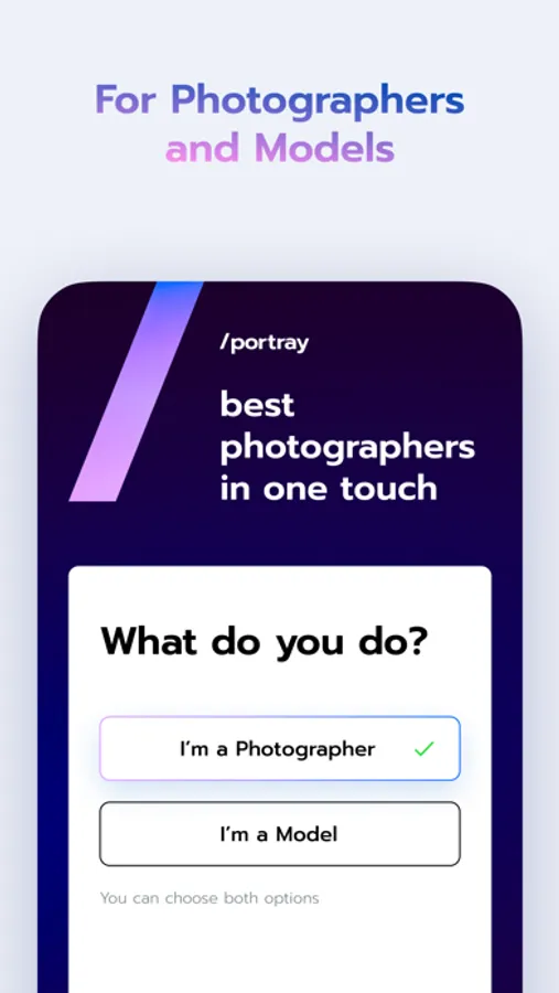 The main purpose of the application is to simplify the search and interaction of photographers, models, both from the professional side, and from amateurs or simply those who want to receive a photography service anytime, anywhere.