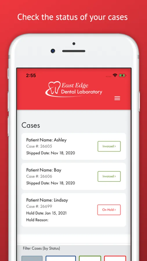 The East Edge Dental Lab mobile app makes working with your favorite dental lab even simpler. You can now view your case status, request materials and pickups, and communicate with East Edge Dental Lab easier than ever before. Using the same login and case information available in your My Account portal, your 24/7 solution to case management is available on your phone.