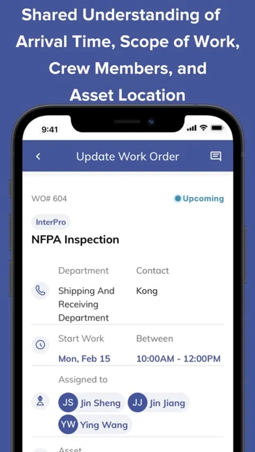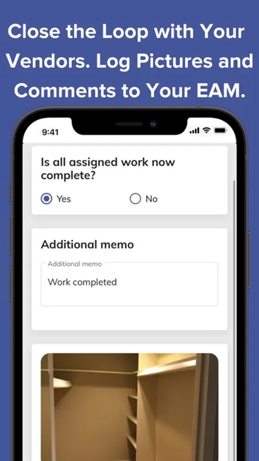 Maintain real-time awareness of when a work request is reviewed, accepted, modified, confirmed, and assigned. Know when the technician arrives on-site, when work status changes, and when the task is completed. All task details are captured for your EAM system, and can be viewed in the app by you and your vendor at any time.