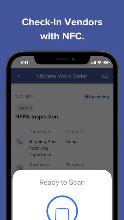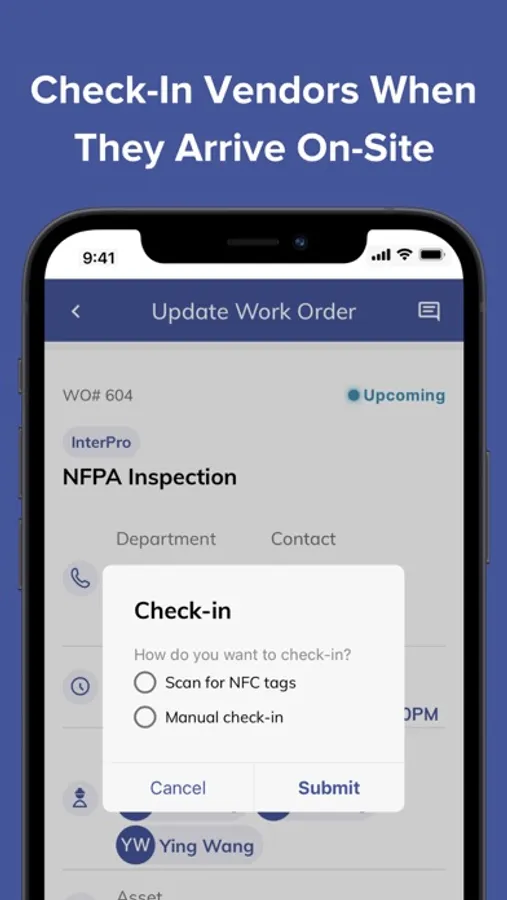 If supported in your facility, vendor technicians can check-in via NFC or by scanning location/ asset barcodes. Maps guide technicians to service locations, and you can see where checked-in technicians are at any given time.