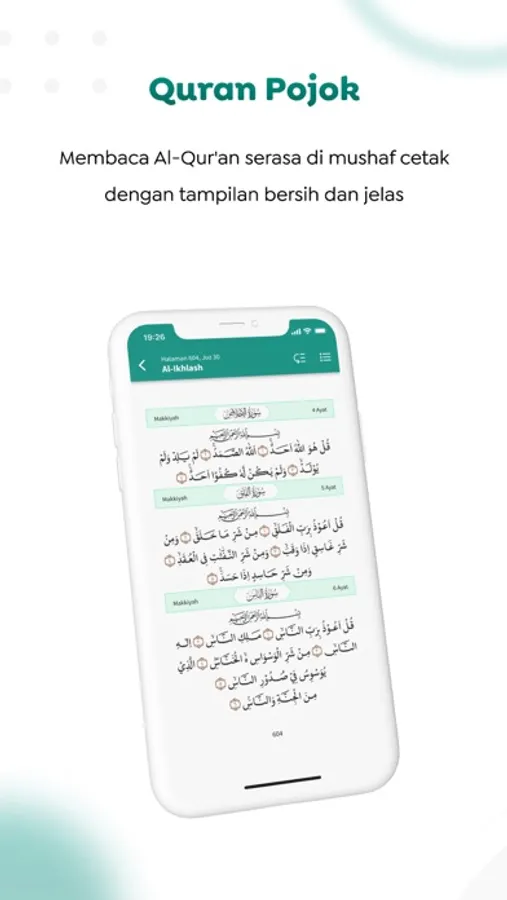 Memfasilitasi para pecinta Al-Quran untuk bisa membaca dalam format per halaman atau per ayat, dilengkapi dengan terjemah, transliterasi Latin, dan tafsir.