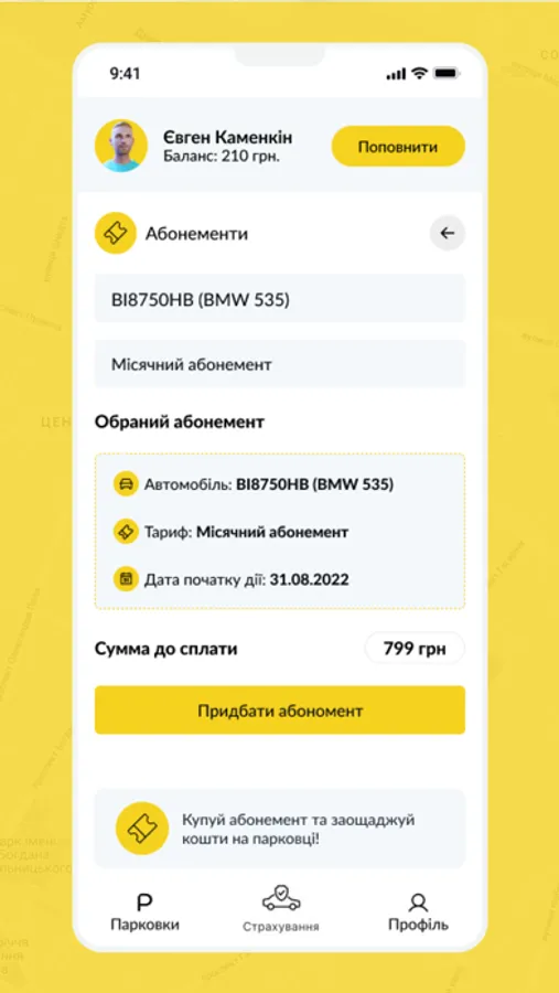 Додаток для швидкого паркування в місті Дніпро, купуй абонементи та дізнавайся про найближчі парковкувальні майданчики