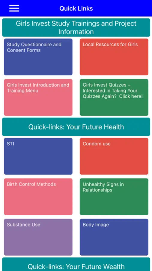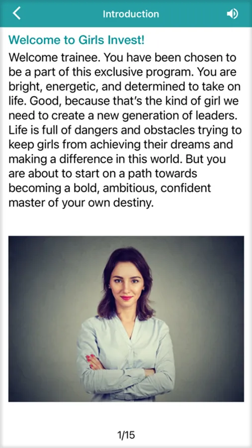 The Girls Invest app involves 5 levels of training relevant to girls’ lives. Trainings aim to:
