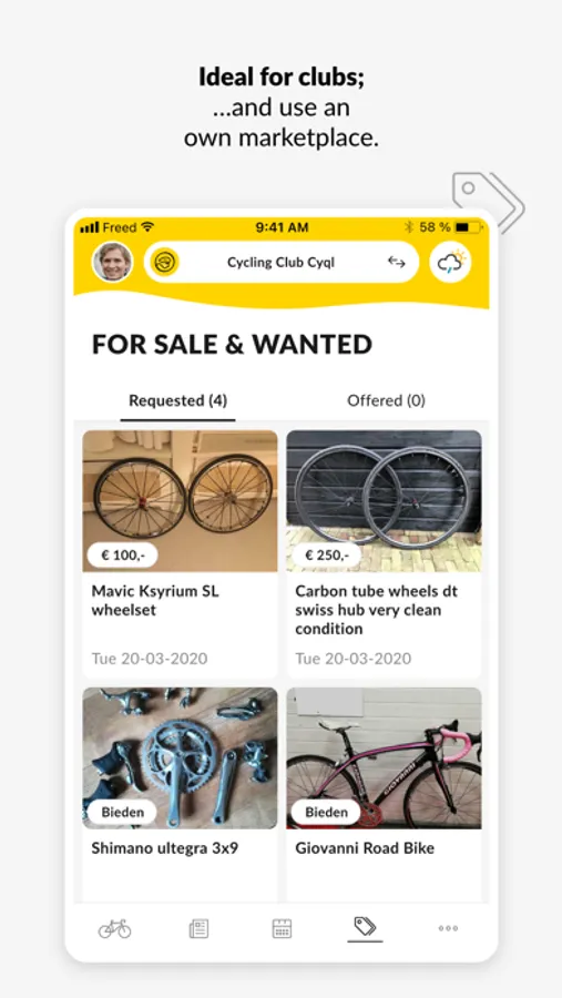 Buy and sell your cycling gear securely on your group's private marketplace, set up and for use by the group's members.