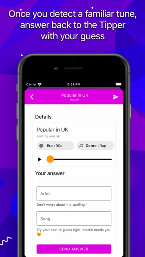 TipTong helps you find the name of the songs you have in your head by uploading your voice and sending it to the community
