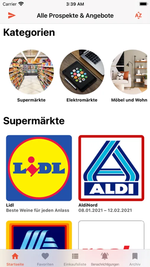 Mit der Anwendung Aktuelle Broschüren können Sie als Erster über die aktuellen reduzierten Produkte auf den Märkten informiert werden.