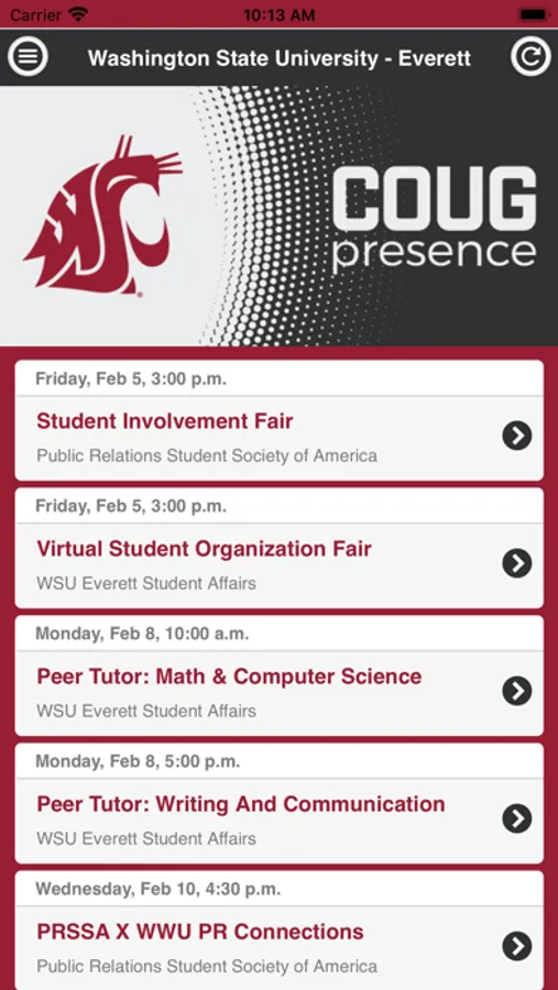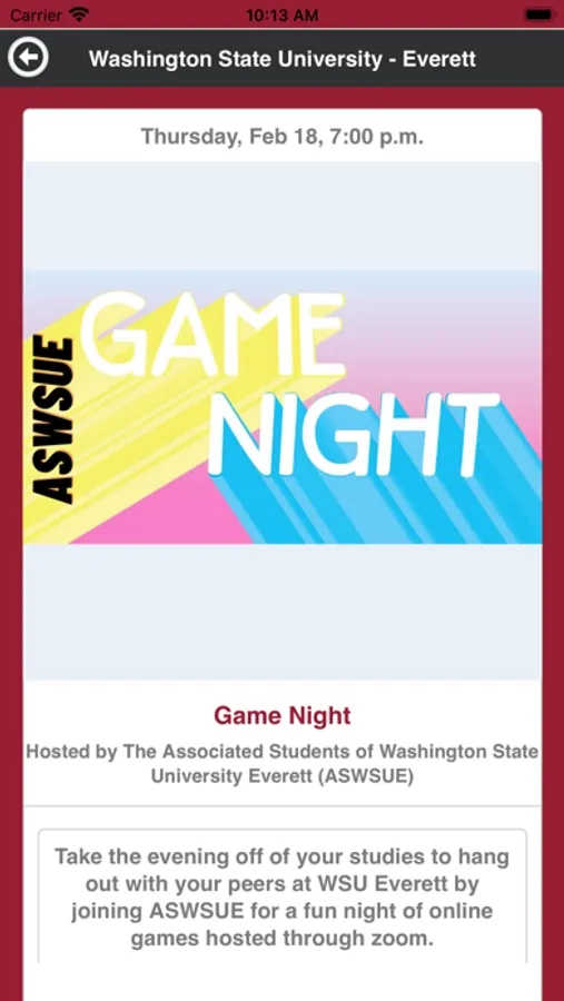 Use the Washington State University - Everett Events app to find out what events are happening and find out how you can get involved on campus!