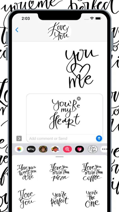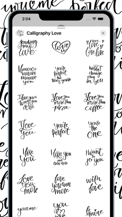 Beautiful handwritten Calligraphy stickers created specially for this sticker pack by professional illustrator! Send beautiful love message with just one sticker! All stickers drawn with love using iPad Pro and Apple Pencil :)