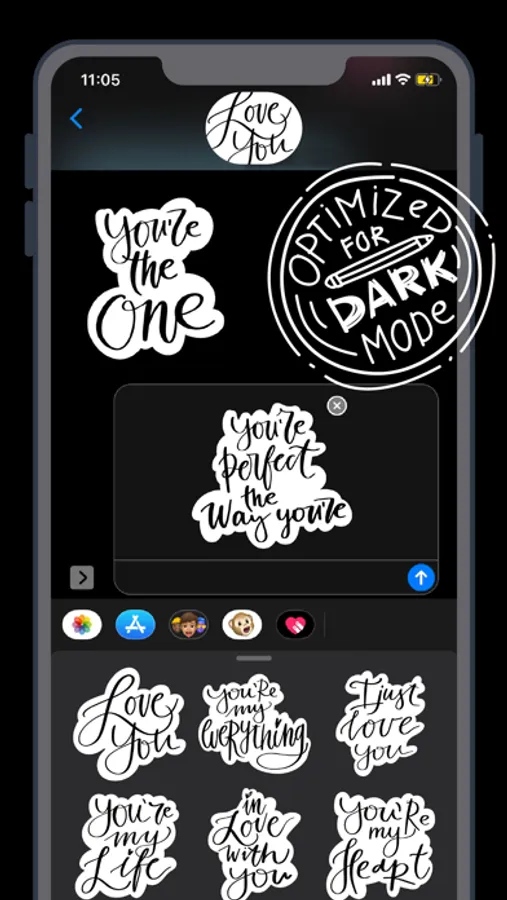 Set of 36 handwritten stylish stickers for iMessage. Optimized for Dark mode! All stickers created specially for this sticker pack using iPad Pro and Apple Pencil.