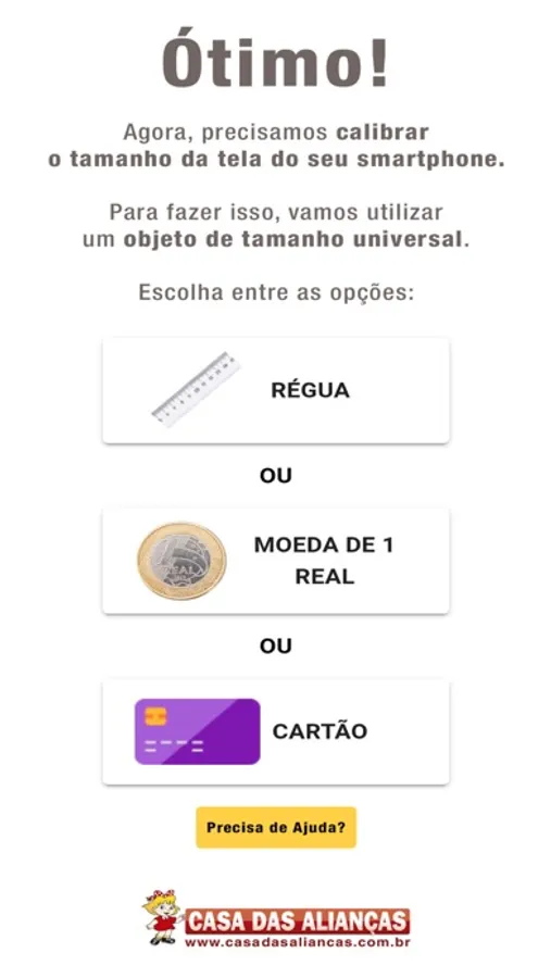 O aplicativo funciona usando um anel que você já tem e que sinta-se confortável usando ele. Este seu anel será a referência para encontrarmos sua medida certa.
