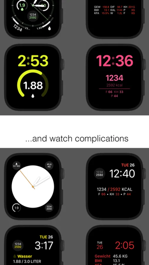 Cal Widgets offers you a large set of widgets for your iPhone (iOS), and complications for your Apple Watch (watchOS). All of these widgets and complications surround the Health App data. So if you want to display your kcal intake, how much you drank, how well you slept last night, how your weight is developing etc. - look no further!