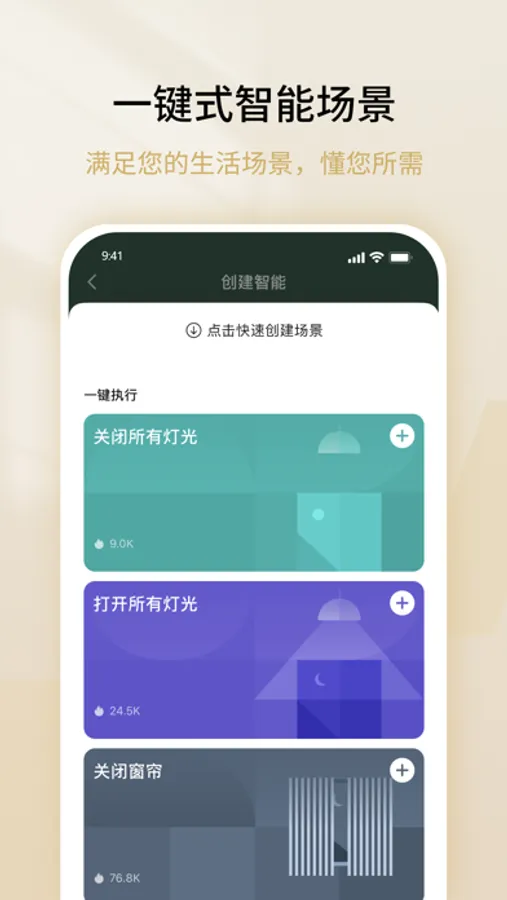 可根据自己的使用习惯,设置个性化场景及设备联动,家居生活更智慧