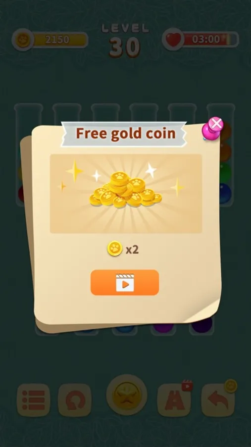 3.目標は、同じ色のすべてのボールを1つの試験管に積み重ねることです。ゲームの途中でゲームを完了できない場合は、試験管を追加してゲームを簡単になることができます。