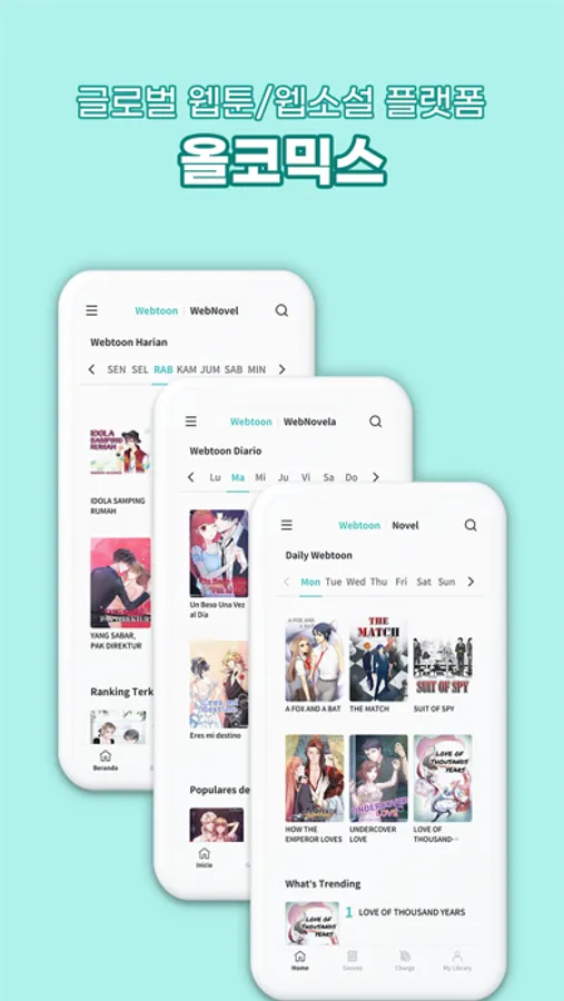 한국, 미국, 일본 등 다양한 국가의 웹툰을 감상해 보세요.