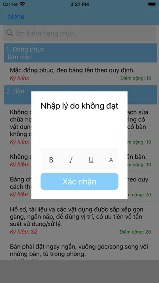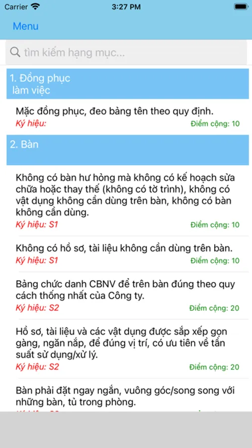 - Phần mềm hiển thị tiêu chí 5S của mỗi đơn vị.