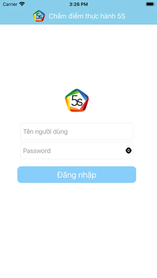 - Người dùng đăng nhập tài khoản để chấm điểm thực hành 5S cho các đơn vị trên điện thoại.