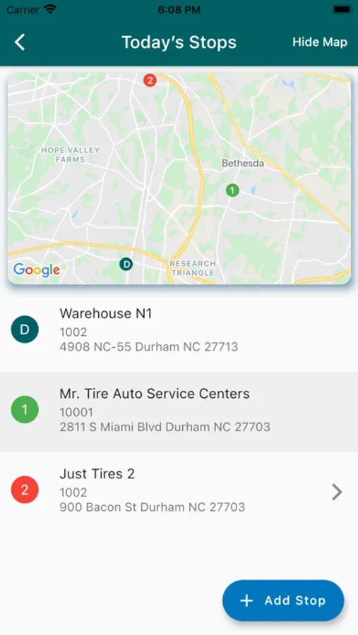 • Display a map of all scheduled and completed deliveries and click the map pin to view the Proof of Delivery slip