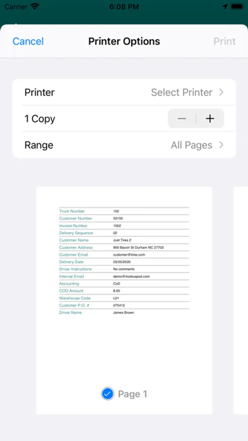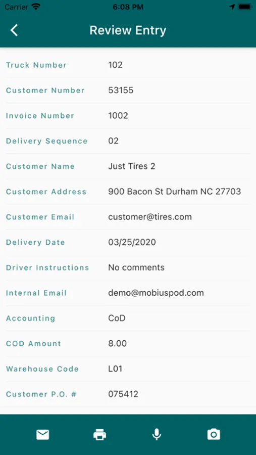 • Create a digital (PDF) delivery slip with a digital signature and enable the Driver to attach photos and voice memos to the delivery slip