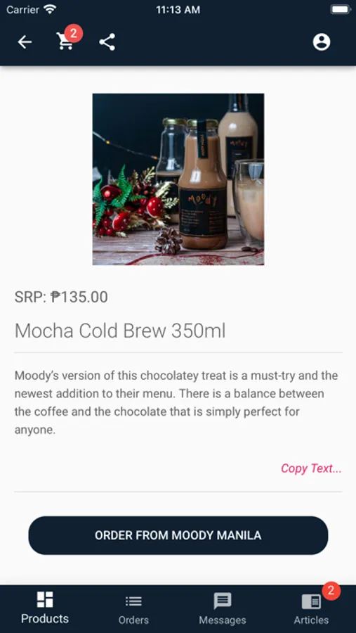 - Chat message the Moody Manila team using the in-app chat feature