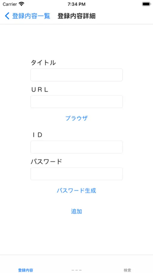 パスワードが設定されている場合、タップすると入力されたパスワードと登録されたパスワードが一致した場合、【登録内容一覧】画面を表示します。
