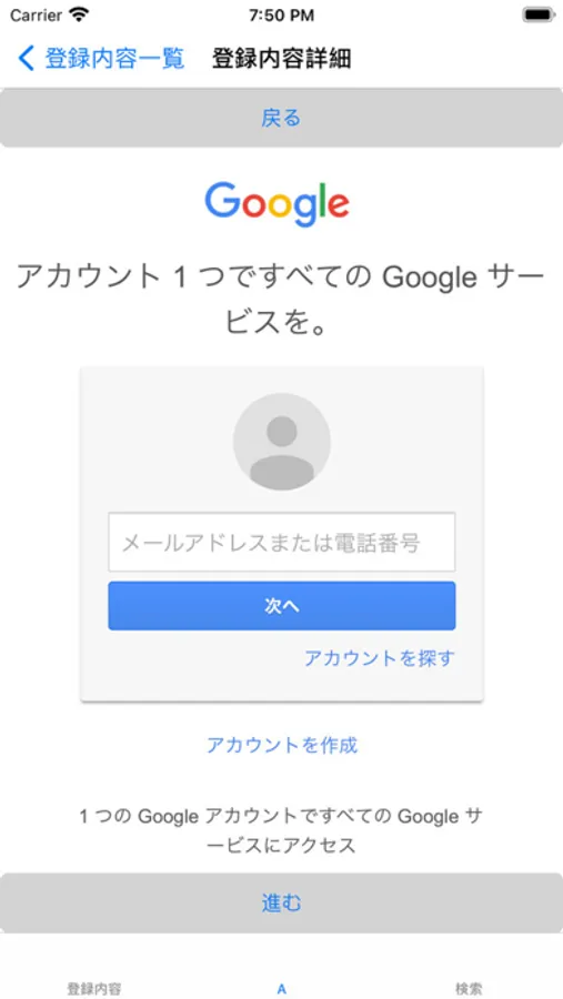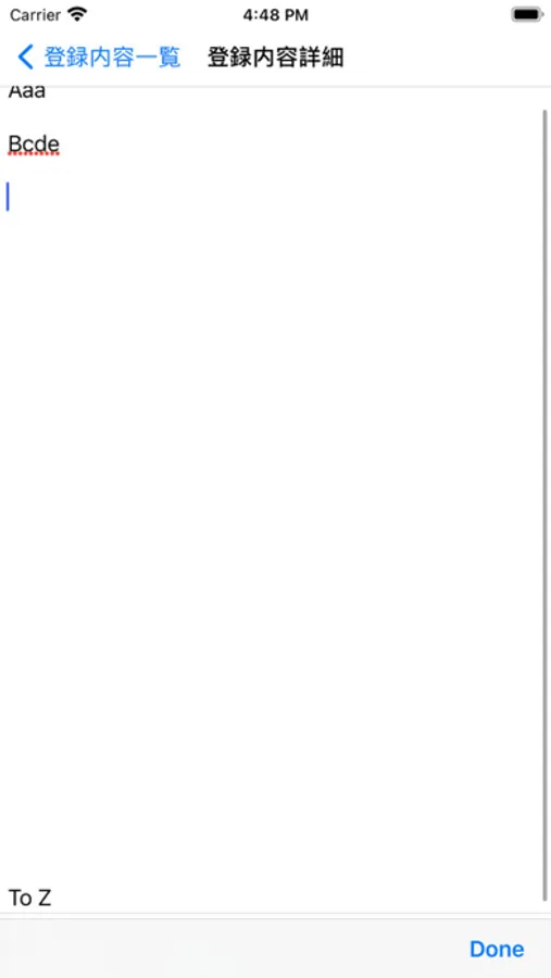・「+」以外の行をタップすると【登録内容詳細】画面に登録された内容を表示します。