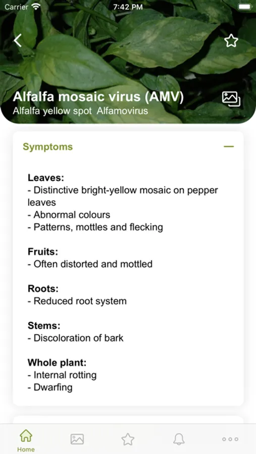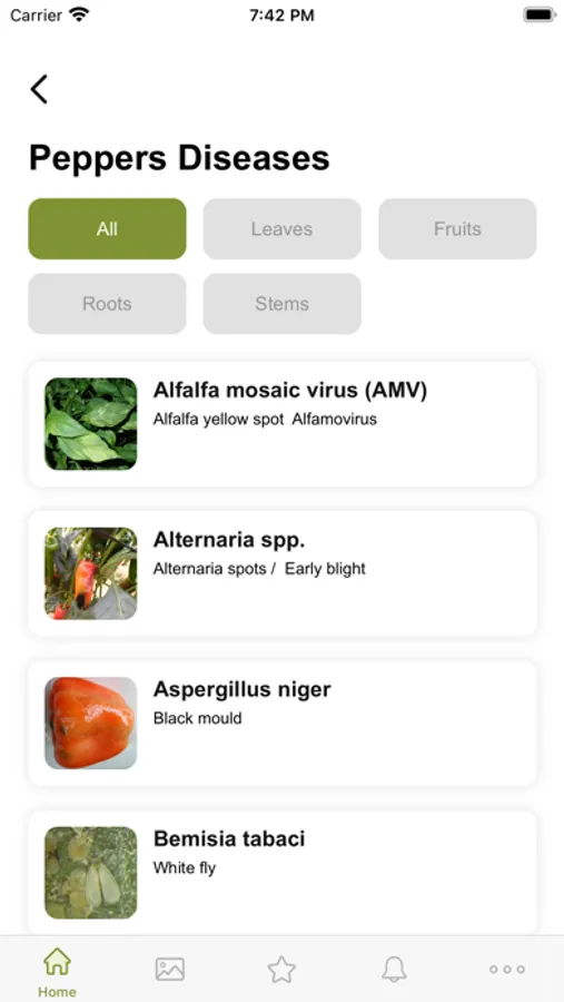 Pepper disease module including 41 diseases with a gallery of more than 300 images.