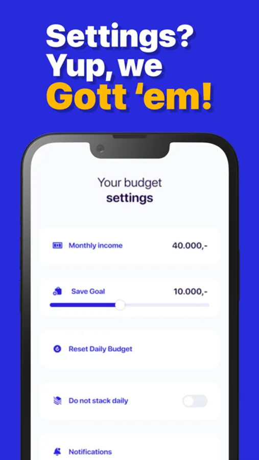 Because Spendersson tracks your budget daily, it also allows you to roll your money over. Didn't spend your budget yesterday? Spendersson will add the remaining money to today's budget, giving you the confidence that you know exactly how much spending power you have.