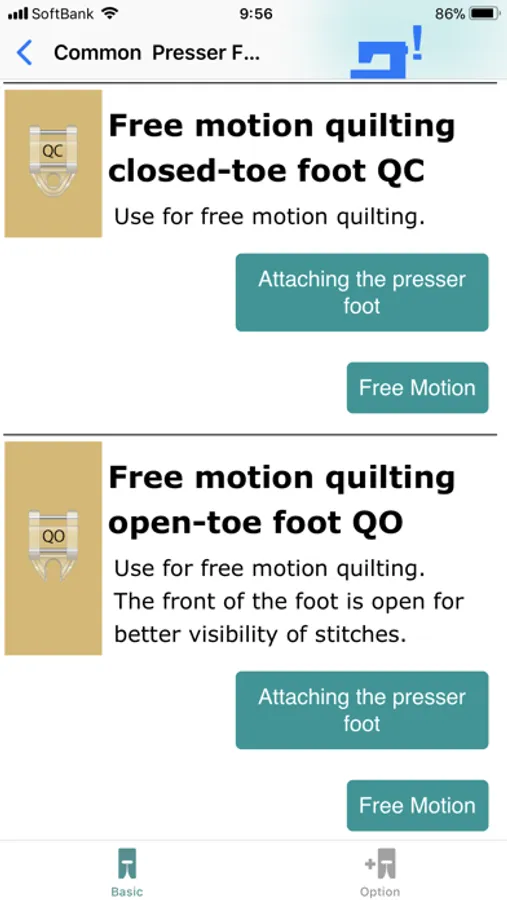 * Presser foot descriptions (including optional items)