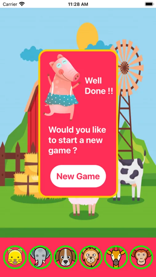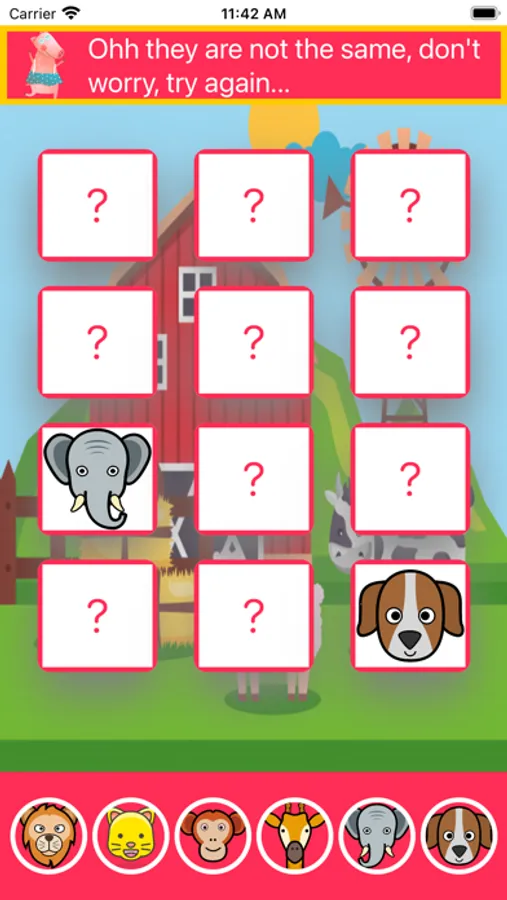 Farm Animals is an easy and interactive game designed for young children. Your aim in the game is to find matching pairs of farm animals and clear the game board. The game also has soft and funny music. Enjoy!