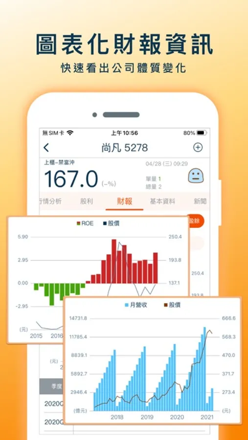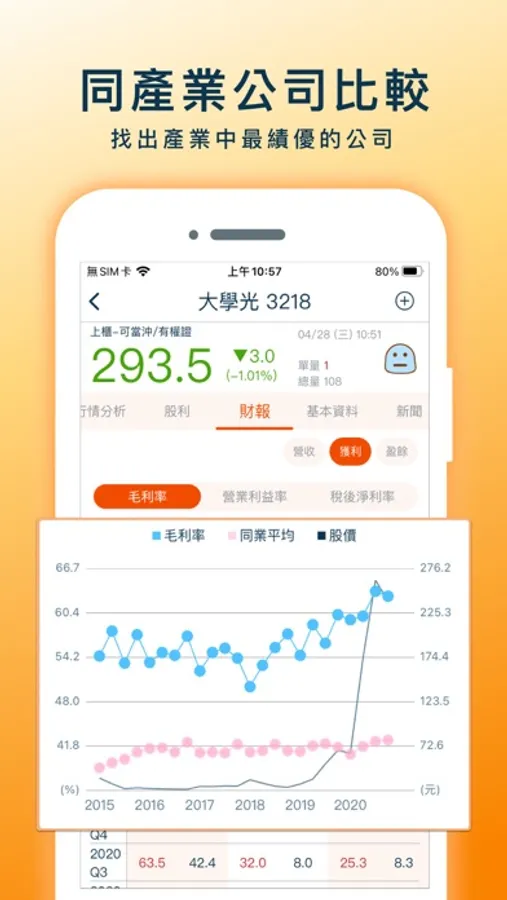 最完整財報資料,搭配視覺化圖表,快速掌握公司體質變化。我們提供營收、毛利率、營業利益率、稅後淨利率、EPS、ROE、ROA...等資料,你想要的基本面資訊這裡都有,查看資訊再也不用開好多APP。