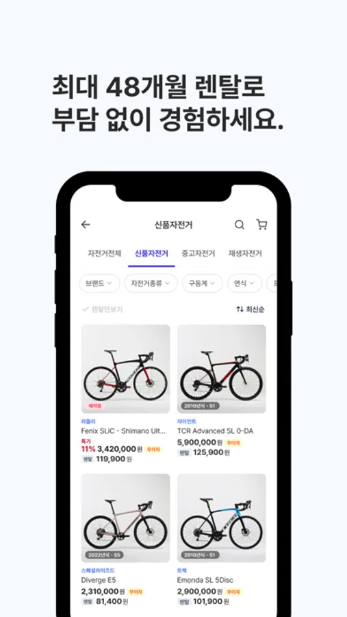 목돈 지출이 걱정된다면? 최대 48개월 장기 분할납부가 가능한 렌탈 서비스로 원하는 자전거를 부담없이 구매하세요.