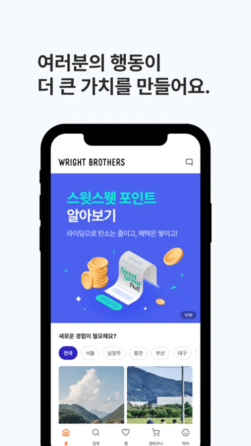오늘도 자동차 대신 자전거로 탄소배출을 막은 당신을 위해 준비했어요. 자전거 타고, 포인트도 쌓고! 자전거로 주행한 거리만큼 현금처럼 쓸 수 있는 스윗스웻 포인트를 드립니다.