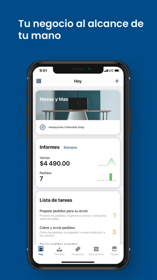 Administra tu tienda online estés donde estés con el app de Mi Tiendita. Carga productos, consulta tu inventario, vende desde tus redes sociales, recibe notificaciones automáticas al realizar una venta y mucho más.