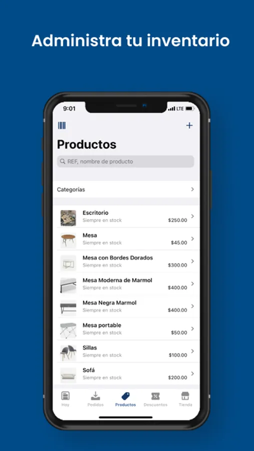 Administra tu tienda desde tu dispositivo móvil, puedes cargar tus productos tomando la foto al instante o seleccionando alguna foto que ya tengas, monitorea y administra el nivel de stock de tus productos.